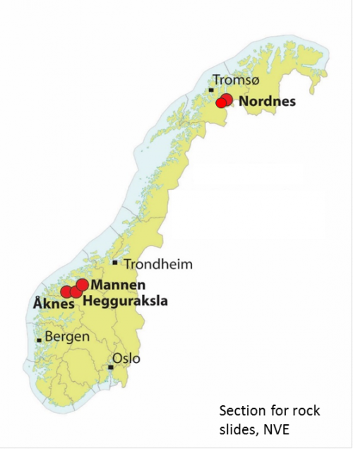 I dag er fem norske fjellpartier instrumentert og nøye overvåket. Disse er Åkerneset, Hegguraksla og Mannen i Møre og Romsdal, samt Jettan og nærliggende Indre Nordnes ved Lyngen, Kåfjord i Troms. Ved hjelp av en rekke teknologier, fra fysiske stag til satellittovervåking, blir det kontinuerlig registrert måledata.