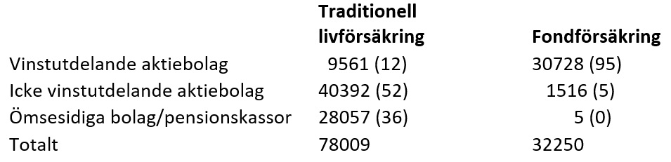 Källa: SOU 2006:55, sid 59 (baserad på uppgifter från Finansinspektionen)