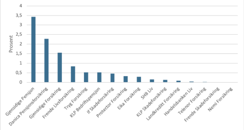 De seks største selskapene sto for 89 prosent av den totale premien. Denne andelen har vært nærmest uendret de senere årene. Figuren under viser markedsandelene til de øvrige selskapene i fjor.