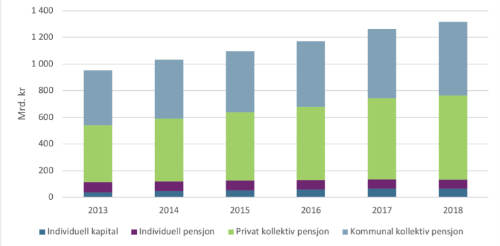 Den samlede forvaltningskapitalen i norske livselskaper var ved utgangen av 2018 på 1 5 34 milliarder kroner, en økning på om lag 4 prosent fra året før. Selskapsporteføljen utgjorde 9 prosent av den totale forvaltningskapitalen. Til forvaltning i kollektivporteføljen hadde livsforsikringsselskapene 1 080 milliarder kroner, mens investeringsvalgsporteføljen var på 312 milliarder kroner.