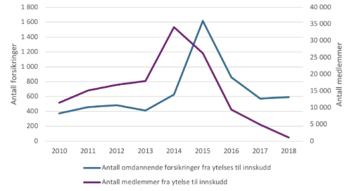 I 2018 hadde 27 prosent av arbeidstakerne medlemskap i innskuddspensjonsordninger med innskudd fra første krone. Dette tilsvarer om lag 378 000 medlemmer.
