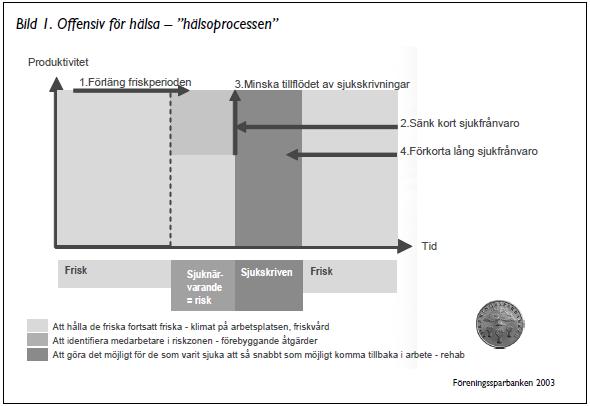 Hösten 2002 startades därför en koncernövergripande satsning i syfte att minska sjukfrånvaron som kallades ”Offensiv för Hälsa”, där jag var projektledare. Arbetet inleddes med en analysfas, där det kunde konstateras att sjuktalen i banken fördubblats mellan 1998 och 2002. Det konstaterades också att det svenska samhället i stort uppvisade samma utveckling – fenomenet var alltså inget unikt för banken.