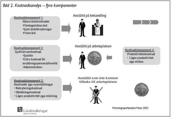 Analysen resulterade i en total kostnad för ohälsa 2002 inom Swedbank om 370 miljoner kronor. Incitamenten att minska sjukfrånvaron blev därmed mycket tydliga.