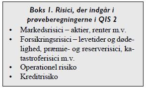Med QIS 2 har man foretaget de første indledende prøveberegninger med henblik på at finde en metodik til fastsættelse af SCR og MCR. QIS 2 udgør en række af prøveberegninger på konkrete risici – jf. boks 1 – som en lang række europæiske forsikringsselskaber og pensionskasser har deltaget i. I Danmark har der været deltagelse