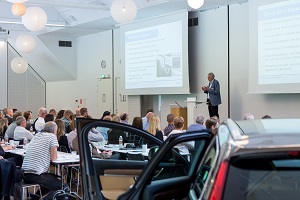 Jan Larsen, PR Manager på Volvo Cars, gav en överblick av den hittillsvarande tekniska utvecklingen på personbilsområdet och vad vi kan vänta oss framöver. Han konstaterade att genom utvecklingen mot alltmer självstyrande personbilar frigörs tid för föraren att, på ett säkert sätt, få möjlighet att göra något annat än att köra bilen. Självstyrande bilar kan bidra till ökad säkerhet, mindre miljöpåverkan och bättre trafikflöden.