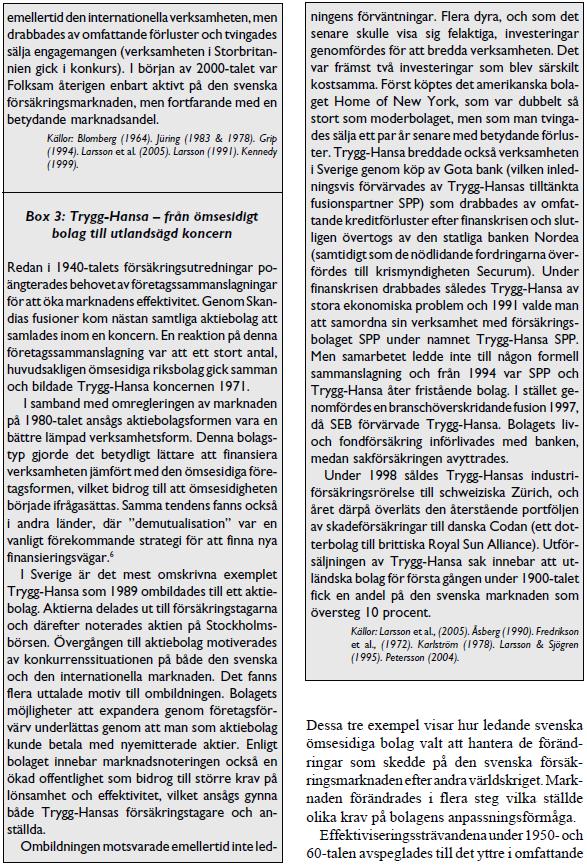 Svenskt försäkringsväsende 1850-1980”, SNS Occasional Paper, Nr 23, Stockholm. Larsson, M., Lönnborg, M. & Svärd, S-E. (2005),
