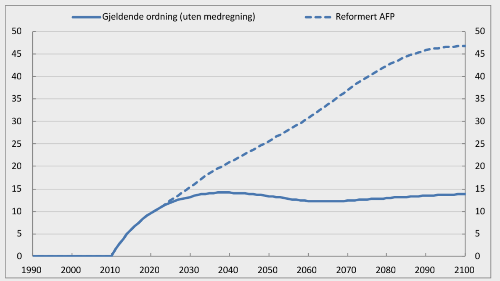 De første årene etter omleggingen vil premieinnbetalingene ligge på om lag 10,5 milliarder kroner, som er mer enn det dobbelte av de løpende utgiftene. De økte inntektene muliggjør en oppbygging av AFP-fondet som forutsatt.