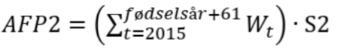 Den framtidige ordningen AFP2 vil være basert på inntekt (med enkelte tillegg) i AFP-bedrift (W) i alle år t fra og med 2015, multiplisert med en sats S2. AFP2 vil tjenes opp som en andel av lønn hvert år og akkumuleres i en pensjonsbeholdning.