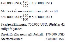 Vid proportionell återförsäkringar delas konsekvenserna proportionellt mellan direktförsäkrare och återförsäkrare. Och det är kanske inte så mycket mera att säga om.