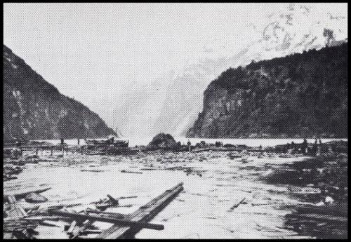 Skadene i Tafjord etter flodbølgen i Tafjord 1934. Foto fra Furseth (1985, øverst); spbekeil /Scanpix (nederst).