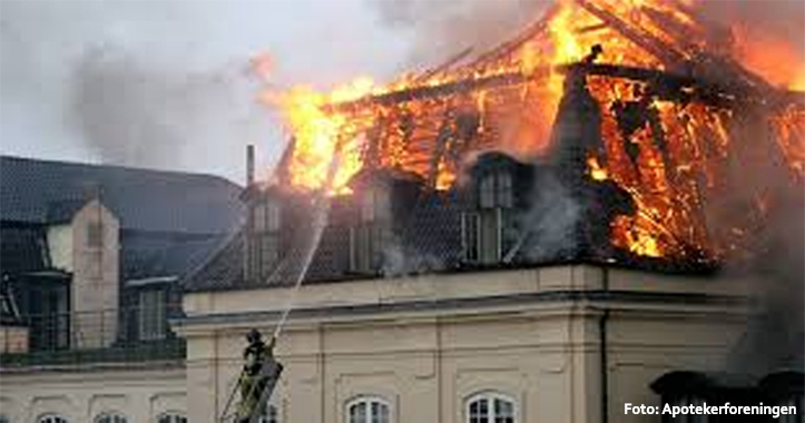 En tidlig morgen i starten af maj måned 2010 udbrød der brand i tagetagen på Dehns Palæ i Bredgade i København. Branden i palæet, der er domicil for Danmarks Apotekerforening, varede i 5 dage og medførte omfattende skader på størstedelen af bygningen. Når branden, der stort kun hærgede i de to øverste etager, fik så omfattende konsekvenser, skyldes det især, at en stor midtersektion i bygningen på grund af pres fra bl.a. slukningsvand og en nedstyrtet tagkonstruktion faldt helt ned i stueetagen.