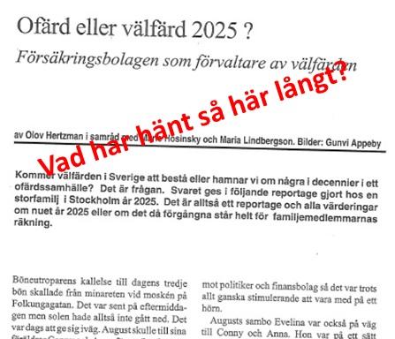I samband med Svenska Försäkringsföreningens 125 års-jubileum år 2000, publicerades i årsboken en uppmärksammad artikel med rubriken ”Ofärd eller välfärd 2025 – Försäkringsbolagen som förvaltare av välfärden”. Den var skriven av Olov Hertzman, som under 90-talet var VD för dåvarande Sveriges Försäkringsförbund, och gav en bild av hur författaren trodde att välfärdssamhället Sverige skulle kunna se ut 25 år senare.