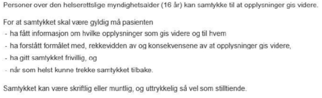 Helsedirektoratet har i et rundskriv30 om helsepersonells taushetsplikt angitt følgende krav til samtykke etter § 22: