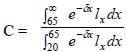 where: δ is the real rate of interest earned on the invested funds, after inflation (both before and after retirement) and l is the life table 1x survivorship probability.
