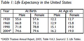 One of the driving forces for reform is the impending dramatic shift in demographics. First, life expectancy has improved substantially and is continuing to improve. Statistics for the U.S. are given in Table 1.