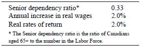 These underlying assumptions would have led to the following projected costs for Canadian social security as a percentage of payroll.