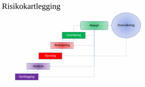 Etter mitt syn er derfor det mest hensiktsmessige for enhver virksomhet å ha et bevisst forhold til risiko og risikohåndtering. Dette gjøres best ved rutinemessig å bruke risikotrappen som illustrasjonen viser.