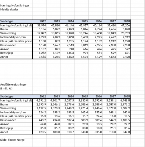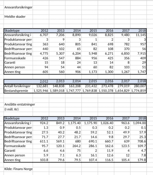 Tabellene nedenfor viser tydelig at antall skader og utbetalte erstatninger gjør forsikring til en viktig del av risikohåndteringsprosessen i den enkelte virksomhet.